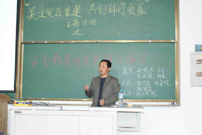 2009年5月17日下午,由校团委主办,化工学院团委承办了在太阳成tyc234cc一校区正心楼22举办的安全教育知识讲座暨联合安全演习活动。校团委书记陈苏老师出席了本次活动。