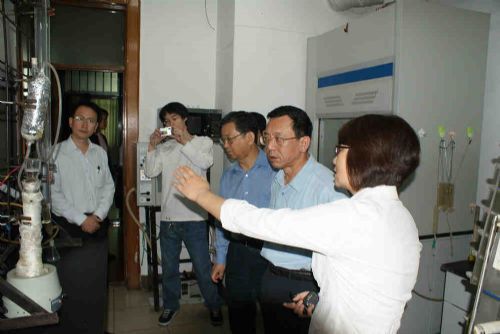 盖如垠副省长一行首先参观了化工学院黄玉东教授、杨春晖教授等部分教师的实验室,详细了解了有关实验成果的技术指标、应用背景、产业化状况等情况。