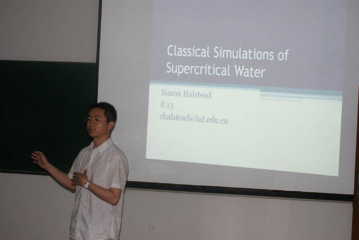7月15日下午2:00,化工学院青年学术论坛邀请Simon Halstead博士在理学楼L801做了关于Classical Simulations of Supercritical Water(超临界水性质的计算机模拟研究进展)的报告,化工学院相关专业教师及同学聆听了报告。甘阳教授主持了本次报告。
