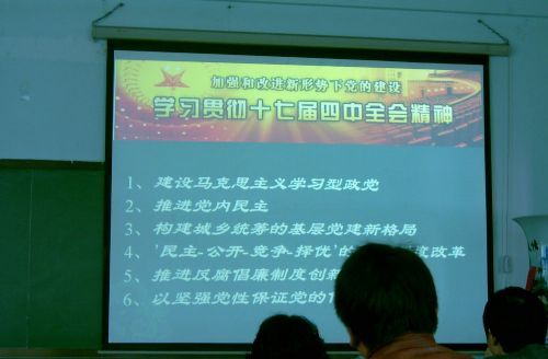 中国共产党第十七届中央委员会第四次全体会议,于2009年9月18日在北京落下帷幕。为了更好地了解国家动态、学习国家政策,从而更好地社会主义现代化事业做出贡献,化工学院0607202班团支部积极响应学校、学院号召,开展了“关注国情,与时俱进”的学习十七届四中全会精神的主题班会。