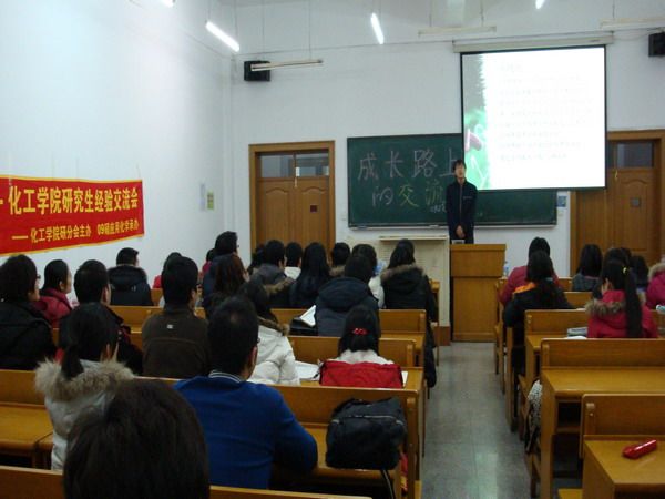 2009年11月28日晚18:30,化工学院研究生经验交流会在诚意楼102举行。本次经验交流会由化工学院研分会主办、09S应用化学班承办,以“成长路上的交流”为主题,秉承“交流·传承·发扬”宗旨,意在进一步加强班际、届际同学之间的交流、融合,使化工精神薪火相传。 化工学院07级博士徐宇虹、08级博士李春香、08级硕博连读谷红波、08级硕士朱晓航、08级硕士王晓坡、08级硕士易传贵等六名优秀研究生受邀来到经验交流会,跟同学们分享他们研究生期间学习、科研及求职的宝贵经验。六位研究生,或在科研上颇有建树,或在求职上很有心得,他们将自己的经验倾囊相授,并针对科研和求职规划提出了一些建设性的意见,希望化工学院的同学们在成长的路上努力前行,少走弯路。 徐宇虹曾多次参加国际会议,科研成果显著。他结合自己的科研心得,做了题为“如何做好科研工作——从入门开始……”的报告,从查阅文献、设计实验、发表论文、学术交流几个方面综合介绍了做好科研、做好学问的要点所在。李春香从个人经历出发,告诫同学们要处理好自己与实验室、导师之间的关系,并就“如何化解个人情感和学业繁重冲突的矛盾”为同学们支招儿。谷红波是六名研究生中唯一硕博连读的同学,她主要分享了申请发明专利的流程,并对论文投稿的一些注意事项进行补充说明。 朱晓航同学是08级应用化学班长,他就整个班目前的就业、读博情况作了统计、分析,并指出求职中应注意的种种问题。他说,求职应该早作准备,努力抓住一些实习机会;国企、私企、外企,他们对人才的要求有所不同,应聘时要注意变通。王晓坡同学作为浩浩荡荡的求职大军中的一员,曾申请公司、企业60多家,参加面试30余次,求职之道经验颇丰,他强调,简历制作一定要趁早,要突出个人亮点,并不断完善。易传贵同学风趣幽默,对求职中必须掌握的技巧作补充说明。 本次经验交流会持续了近三个小时,会场气氛轻松活泼,为同学们搭建了一个聆听过来人经验的平台,是同学们得以在交流中有所收获,在快乐中有所进步。会后,同学们纷纷表示,此次经验交流会受益匪浅,为他们以后的成长明确了方向。