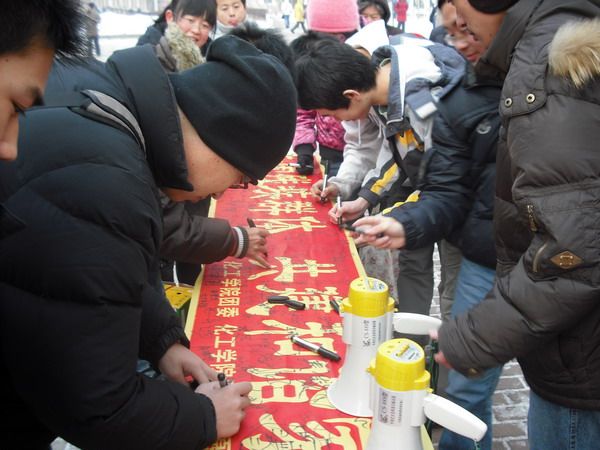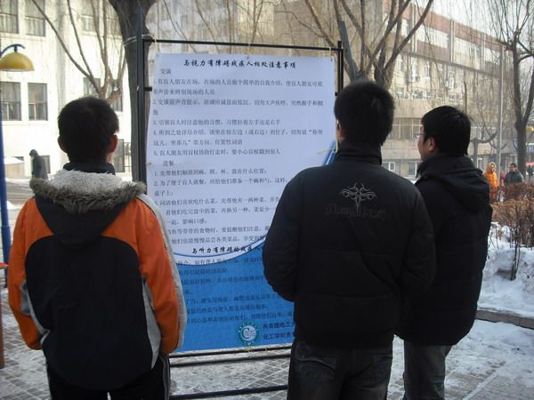此次活动于12月3日上午11:00在学苑楼前举行,活动以爱心签名和介绍与残疾人交往的礼仪为主要内容,吸引了很多同学前来参与。在一个小时之内,条幅上就已经签满了同学们的名字。活动于12:30圆满结束。