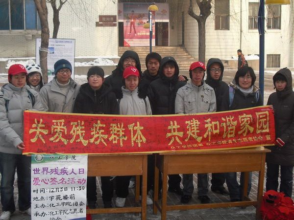 12月3日是第18个世界残疾人日。为了表达对残疾人的关心,并动员人们维护残疾人的尊严和权利,化工学院志愿者协会举办了以“关爱残疾群体,共建和谐家园”为主题的爱心签名活动。 12月3日是第18个世界残疾人日。为了表达对残疾人的关心,并动员人们维护残疾人的尊严和权利,化工学院志愿者协会举办了以“关爱残疾群体,共建和谐家园”为主题的爱心签名活动。