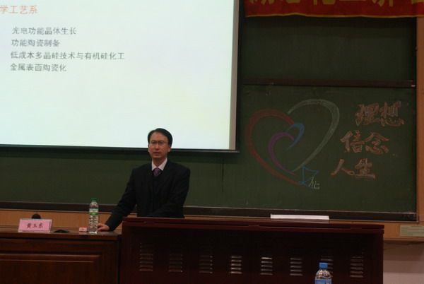 12月10日晚6:30,由励志化工讲坛、化工学院研分会主办的“理想·信念·人生——我与院长面对面”主题讲座在理学楼001室举行,化工学院院长黄玉东教授为同学们奉献了一场精彩的演讲。 黄玉东院长回顾了哈工大化工学科的发展历史以及化工学院成立的背景,并对化工学科建设情况、学院的发展思路及前景进行了介绍。黄院长还结合个人成长经历,真情讲述了家人及恩师对自己的点滴影响与教导,鼓励同学们要培养自强自立,坚韧不拔,吃苦耐劳,团结合作等优秀品质。 黄玉东院长对当前就业环境进行了分析。他指出,当今国内、国际节能减排成为大势所趋,身为化工学院的学生正是大展身手的时候,建议大家提前做好就业准备,将来为社会贡献自己的力量。
