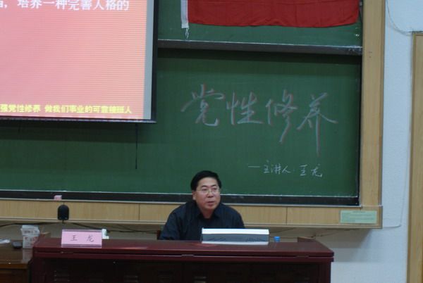 2009年12月23日晚18:30,哈工大党校化工学院—理学院分校2009年预备党员培训班第五讲在L001如期举行。此次党课以“加强党性修养,做我们事业的可靠接班人”为主题,由交通学院党委副书记王龙老师主讲。