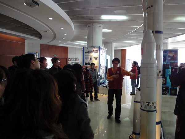 参观完航天馆后,各小组学员纷纷表示,今后一定要继续努力学习专业知识,以杰出校友为榜样,爱党爱国,将成为一名合格的共产党员作为一生的追求,将加快我国的社会主义进程为己任,为实现中华民族的伟大复兴而奋斗。 为了响应化工学院、理学院党校关于积极学习校史为九十周年校庆献礼的号召,2010年3月27日,培训班全体积极分子学员分组参观了学校航天馆。此次参观活动在学员增强学校自豪感和凝聚力方面起到了很大作用。 按照约定时间,各小组成员满怀期待准时来到学校航天馆。参观开始,学员们聚精会神地观看着航天馆内的展品,其中有导弹和卫星部件的实物,也有按比例制作的模型。通过讲解员的讲解,学员们对我校的航空航天事业有了更加深刻的认识。我校航天馆就是我国国防事业不断走向强大的一个缩影,从仿制前苏联的武器装备,到自主研制武器,再到如今的世界领先水平。我国不但实现了科学技术的跨越,更是民族尊严的体现。令学员们感到非常自豪的是,这些成就充满了哈工大人的努力和奉献,包含了哈工大人的聪明和才智。一批批杰出的哈工大校友献身祖国航天事业和国防事业,成为这个领域举足轻重的人物。他们为振兴我国的国防事业贡献了自己的力量,更将我校的美名传向了全国,传向了世界。