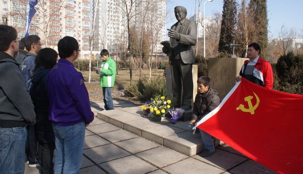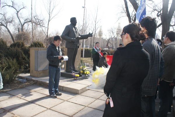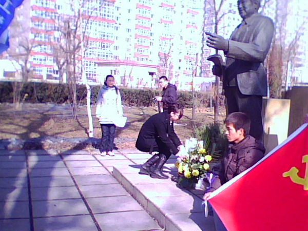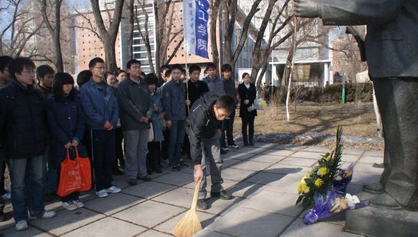 为悼念马祖光院士,传承哈工大精神,2010年4月3日,化工学院本科生各党支部成员共20余人到科技园祭扫马祖光院士的雕像。