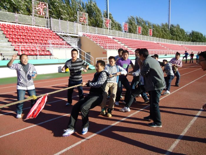 2010年9月23日下午,化工学院团委组织各团支部在校田径场举办了秋季学期趣味运动会,并为参加校运动会进行预选赛,大二和大三的同学们参加了此次活动。 这次趣味运动会的项目包括拔河、跳大绳和多人多足。下午2:30活动正式开始,三项比赛同时进行。 经过激烈的比赛后,0914201团支部获得了多人多足项目的第一名,0807101团支部获得了跳大绳项目的第一名,0807202团支部获得了拔河项目的第一名。 比赛结束后,学生会为每个获奖班级颁发了奖状以及奖品,并合影留念.
