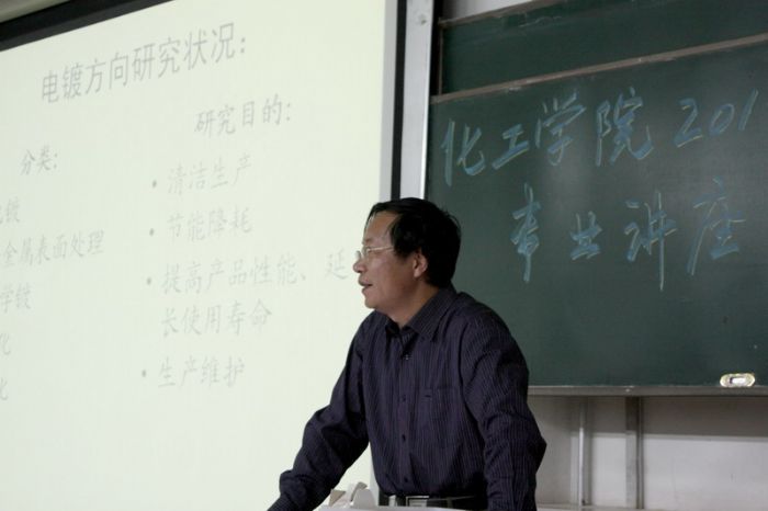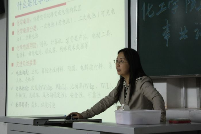 为使新生对化工学院各学科有更深一步的了解,激发本专业的学习热情,2010年9月24日下午,化工学院2010级新生专业教育讲座之电化学专业讲座二校区B11教室举行。化工学院副院长 每一位同学自始至终、聚精会神听着老师们的介绍,在结束了精彩而全面的介绍后,老师们还现场回答了同学们提出的各种问题,学生与老师们非常融洽地互动起来,气氛非常活跃,很多同学都道出了自己的疑惑和对未来的憧憬,老师们都进行了认真的解答并给予了鼓励。 一名脚受伤的同学,是穿着拖鞋一步步慢慢地挪到教室的,讲座之后,他说:“我曾对自己选择的专业很迷茫,这次讲座使我对这个专业有了很深的了解,并对学好这门科学有了信心,我的迷茫与困惑由此而消除了!