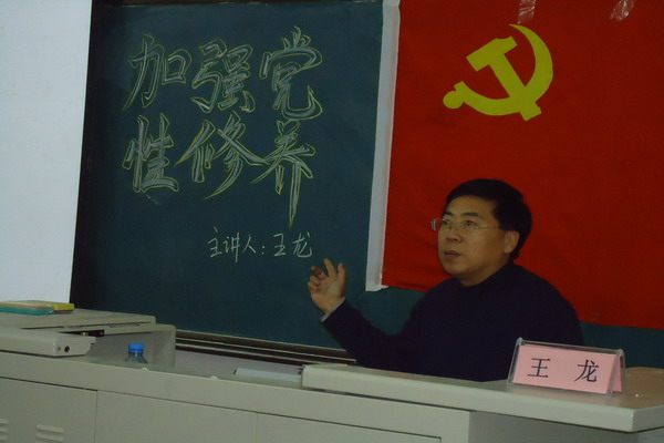 2010年11月2日,哈工大党校化工学院——理学院分校预备党员培训班第二讲在正心303举行。交通学院党委副书记王龙老师给学员们带来一堂生动精彩引人深思的讲座《加强党性修养——做我们事业的可靠接班人》。 讲座结束后,学员讲坛围绕着“党性修养”的主题,展开了热烈的讨论与交流。有同学跟大家讨论了“理性爱国”的具体表现,向大家明确传达:作为党员,在平时生活中应该沉着冷静,透过现象看本质。有同学做了优秀共产党员的事迹展示,为大家树立党性修养的楷模。最后,伴随着每位学员写出自己的“随堂一句话”,本堂课完满结束。