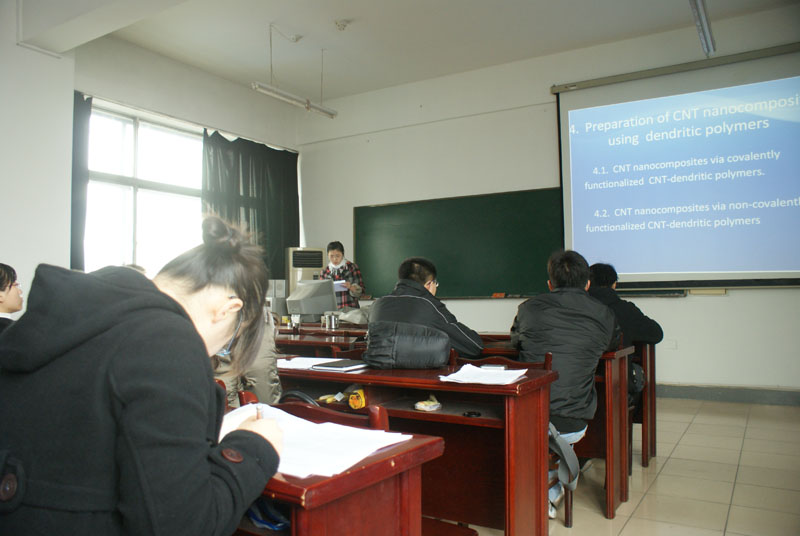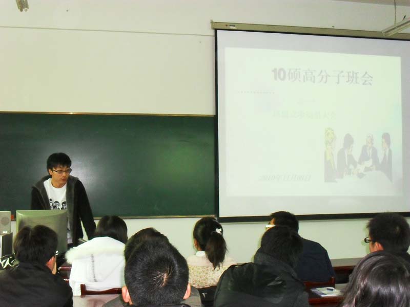 十月初,化工学院10硕高分子化学与物理班经审批后获得研究生院的A类班级立项支持,全班同学积极向上,开展了丰富多彩的班级活动。 班级首先进行了班内小组讨论,确定了以党员带动团员,全体同学共同进步的学习方式。班长牟辰中在班级立项动员班会上鼓励大家,不仅要在学习和科研中认真努力,在其他方面也要积极踊跃。班级立项中包含了学术交流、就业经验交流、企业参观或实习、体育文化活动等一系列能够提升综合素质的内容。动员大会上,班干为全班同学发放了“成长日记”,鼓励大家记录下研究生生活的点点滴滴,作为今后确立目标的参考。 在十月份,班级内部开展了两次学术交流活动。同学们的学术报告分别涉及到碳纤维及表面改性、手性体分离技术、木材用胶黏剂、功能高分子膜等方面。 同时,为了鼓励大家走上讲台,锻炼表达能力,班级内部在十一月初组织了“个人未来十年职业生涯规划”讨论活动,同学们站在讲台上,向其他同学描述了自己未来的规划,许多同学都有继续读博的打算,并且明确了硕士期间的科研计划以便为继续深造打下坚实的基础。很多打算找工作的同学明确了自己在研一期间要努力学好英语、研二认真在工厂实习的目标。通过职业生涯规划讨论,大家都明确了自己现在学习的目的,茫然的心态逐渐消失。 作为哈工大的硕士,班级同学都认为不能读死书,因此班干经常组织大家在业余时间开展丰富的文体活动。比如,篮球赛、足球赛、羽毛球、游泳等活动,体育运动不仅使班内同学身体素质增强,同时,更增进了同学之间的感情。 班会动员 全民演讲活动 班级同学高兴的听取个人职业生涯规划 篮球场上的英姿 全班同学篮球场合影 班内学术交流