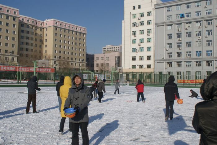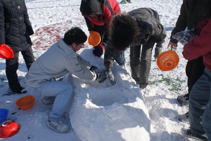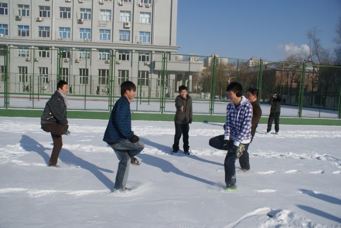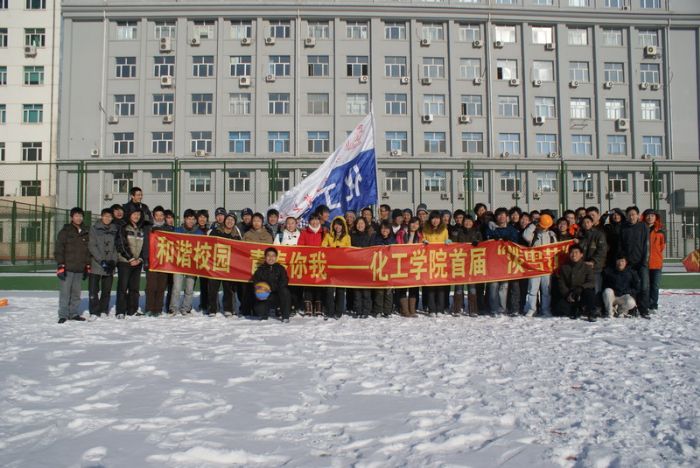 20101127,“和谐校园,青春你我”——化工学院首届“泼雪节”活动在篮球场上火热上演。本场雪地活动由化工学院团委主办,0914203班团支部承办。化工学院辅导员贺金秋老师参与了此次活动。化工学院本硕各年级学生团支部均参与到了活动中,整场活动趣味强,效果好。