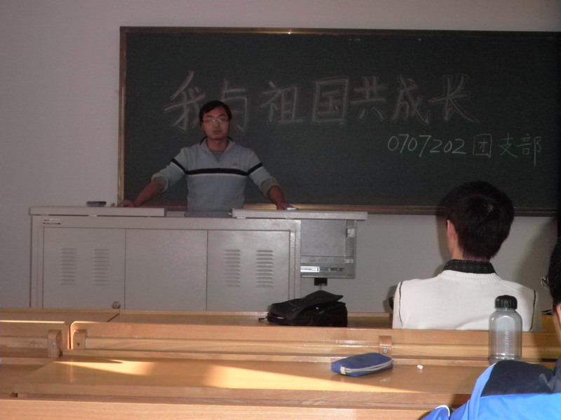 2010年11月24日上午,0707202团支部在正心320举办“我与祖国共成长”主题团会,团支部全体成员参加了这次会议。 首先,支部成员共同学习了创先争优活动精神;接着,团支书向同学们传达了学院团委的指示,并带领同学们学习了吉炳轩书记在哈工大的讲话和《精神的力量》一书;最后着重围绕当今热点话题进行了讨论。 讨论的话题有理性爱国、经济形势、传统文化、反对腐败和造假以及我们应该如何作为等。同学们积极发言,热烈讨论,最后大致形成了统一的观点。同学们认为,我们应该努力学习,认清当今形势,理性爱国,弘扬中华传统文化,反对各种腐败和造假,为把哈工大建设成世界一流大学贡献自己的力量。 会议现场气氛十分活跃,活动在热烈的讨论中结束。通过这次主题团会,提升了同学们的思想,增进了同学之间的交流,激发了同学们的奋斗热情。