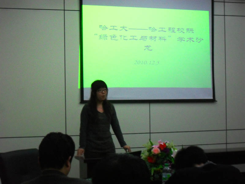 2010年12月5日下午,由化工学院主办的第一届研究生学术科技节系列活动之“哈工大—哈工程”校际“绿色化工与材料”学术沙龙活动在活动中心334成功举行。化工学院研究生协理员王玉楠老师、我校化工学院和理学院以及哈工程材化学院的相关专业的优秀硕士和博士研究生同学参加了此次活动。 主持人首先介绍了到场的参加沙龙的嘉宾和同学,随 此次校际学术沙龙共有8位研究生带来精彩的学术报告:第一位报告的同学是来自哈工程的硕士生王仁奎,他为大家介绍了磁性纳米造影剂的制备与应用;我校化工学院硕士研究生朱俊生展示了超级铅酸电池的应用前景及其制备思路;哈工 通过此次活动,同学们的创新能力、学术视野得到了一定的提高,同时本次活动也促进了哈工大和哈工程的相关学科的学术交流与合作,相信同学们会以更高的学术热情投入到以后的科研工作中。