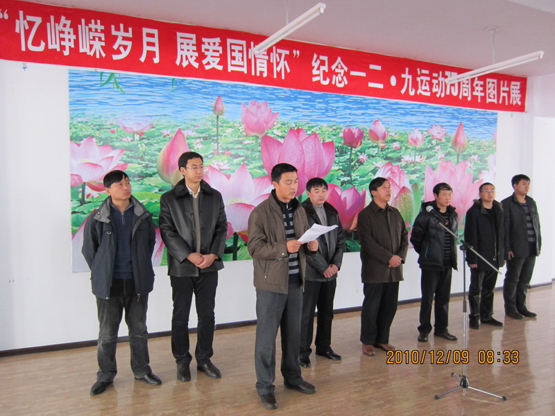 为纪念“一二九运动”七十五周年,缅怀革命先烈,弘扬爱国主义精神,2009年12月7日,化工学院团委与哈尔滨方正团县委联合开展了“忆峥嵘岁月,展爱国情怀——纪念‘一二九’运动七十五周年图片展”活动。本次活动由化工学院团委和方正团县委共同设计、组织和策划,并得到了方正县委、县政府和方正团县委等部门的大力支持。 方正县委副书记张超在活动中做了重要讲话,他要求全体学生铭记历史,坚定信念,把爱国情怀和民族振兴的责任感贯彻到学习生活中去,树爱国之心,立报国之志,发奋图强,勤奋学习,全面提高综合素质,为社会主义建设事业贡献力量。 本次图片展分为“简介篇”、“回忆篇”、“宣言篇”、“人物篇”、“事件篇”和 “意义篇”等若干部分,通过讲解员细致生动的说明,展板上的一幅幅图片将同学们带回到了那个激情燃烧,永远值得铭记的年代,青年人的不屈与无畏激励了一代代爱国的仁人志士,更让生活在和平年代的青年一代体会到幸福生活的来之不易。参观图片展后,与会领导与学生共同在条幅上签名留念,寄托爱国情思。 本次活动是化工学院—方正县大学生社会实践基地建设的一部分,不仅丰富了方正县青年学生的课余生活,更是对方正县青年学生进行了一场爱国主义精神教育,同时化工学院团委学生干部在搜集素材和策划组织本次活动的过程中也受到了爱国主义的教育和激励。