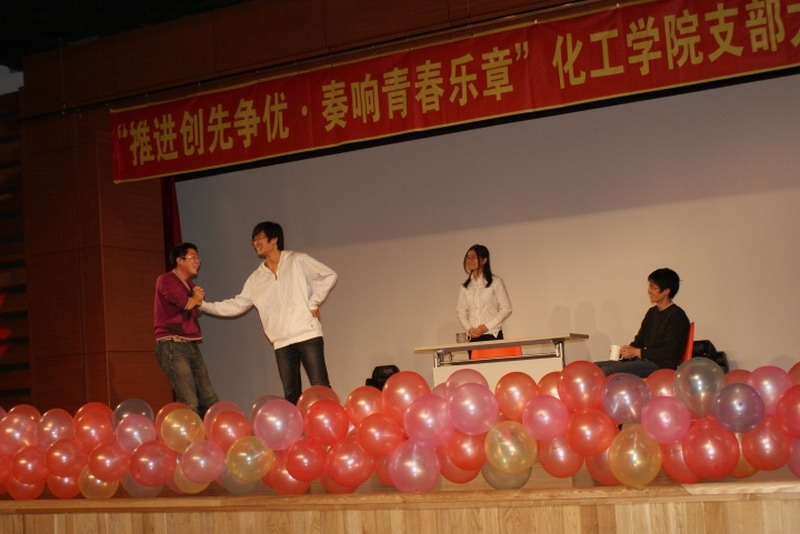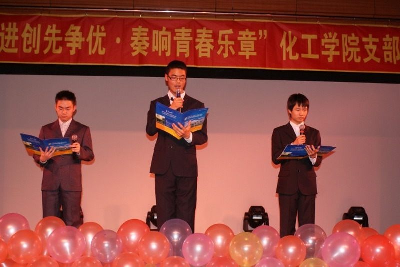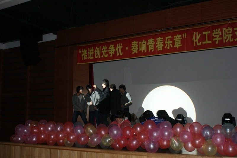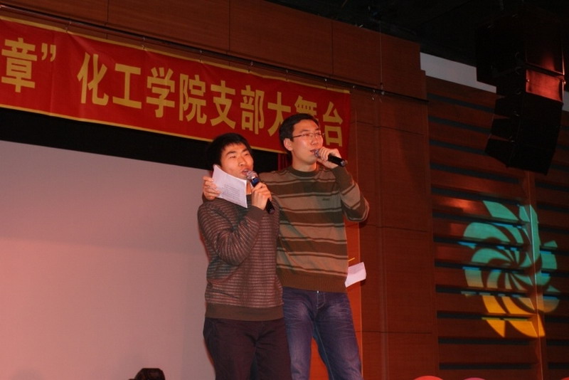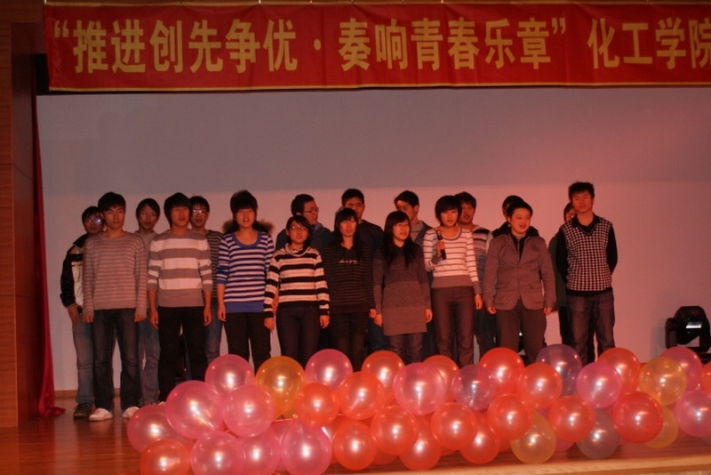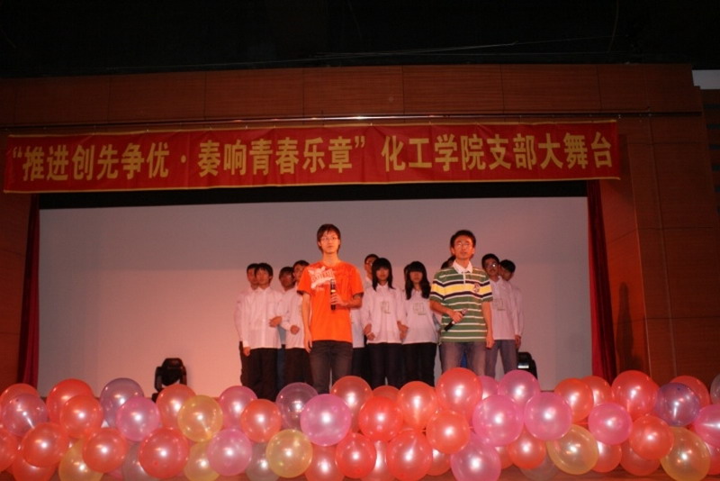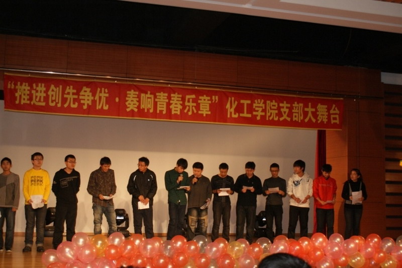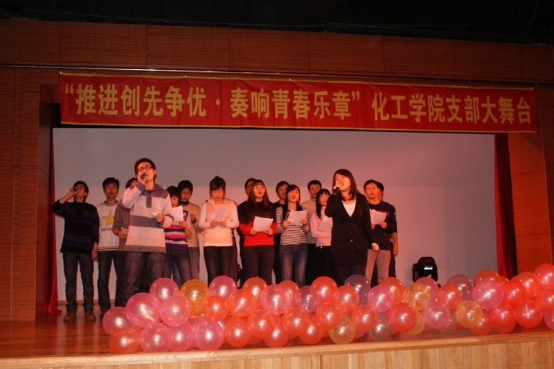 为推进团建创先争优,加强基层团支部建设,提高团组织的影响力、覆盖率和凝聚力,2010年12月11日晚,新活动中心101,化工学院团委主办,化工学院学生会、0914201班承办了“推进创先争优,奏响青春乐章”化工学院首届支部大舞台活动。 晚会以青春奔放的爵士舞表演和0914203班的搞笑兔子舞开场。小品《懒汉相亲》更是点燃了全场的欢快气氛。晚会以团支部为单位上演了《让我们荡起双桨》《朋友》《我的未来不是梦》《超越梦想》等大合唱,充满青春激情的大合唱拉近了同学们之间的心,更凝聚了化工人的精神。话剧《三国杀》,情景剧《因为爱在心中》,独唱《彩虹》表现了化工人的多才多艺的一面,从一个艺术的角度体现了化工学院学生丰富的文娱生活和健康的生活状态。每个团支部表演节目前播放的班级风采展示更让每一位化工人都为自己的团支部而自豪,为身为化工学院大家庭中的一员而骄傲。最后化工学院团委书记刘铭辉、副书记贺金秋为全场同学献唱了两人合作改编的《心如潮水》,表达了对学生和本职工作的热爱。 在本次活动中,每一个团支部都为了节目的彩排而付出了巨大的努力,每一个团支部表演的节目自然朴实却又不乏真情的流露,每一个团支部中的同学都为了整个集体用心去合作和感受,本次支部大舞台活动取得了圆满的成功。
