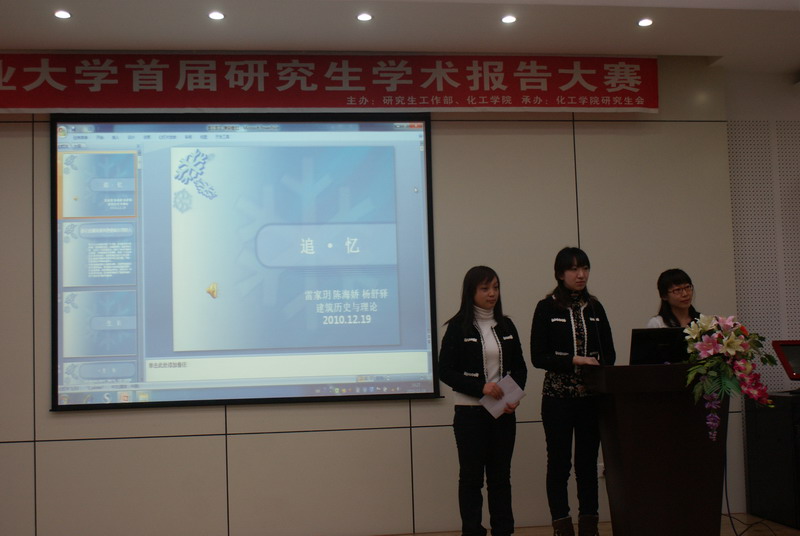 12月19日下午,研究生工作部和化工学院共同举办的哈工大首届研究生学术报告大赛两场初赛分别在新活动中心330、331隆重举行。航天学院周彬老师、能源学院赵军明副教授、建筑学院白小鹏教授、计算机学院信息安全教研室副主任翟健红教授、食品学院徐德昌副院长、化工学院优秀青年教师张生六位老师担任了初赛第一场的评委,来自电信学院、能源学院、建筑学院、理学院、食品学院、媒体与艺术系的参赛选手及其队友参加本场报告。 航天学院果立 大赛以学术报告为主要形式,主要从报告人的仪表形态、语言表达、报告内容、演示文稿制作等方面进行综合考核和评定。目的在于拓展我校研究生的学生视野,同时为研究生提供学习优秀报告的机会,为以后的科研工作积累学术报告的经验。 本次学术报告大赛的报告内容形式多种多样,其中来自材料学院的博士生张晓东介绍了可用于高产率制备纳米线的新型原料;来自外国语学院的硕士生孟德慧用英语进行报告,探讨了外国语言中的各种文化现象;来自建筑学院的雷家玥、陈海娇、杨舒驿运用精彩的演讲引领观众追忆了消逝中的哈尔滨。其他选手也围绕自己的专业方向,针对一些具体的学术问题进行了较为新颖和细致的探讨,并积极认真的回答评委老师的提问。 比赛中,选手们都展现了自己的风采,最终来自能源学院的孙龙、王璐,建筑学院的胡振、石拓,媒体与艺术系郭琛、化工学院的严鹏丽、材料学院的张晓东、化工学院的谷红波、媒体艺术系的吴斯一、航天学院的覃弦在初赛中脱颖而出,成功晋级决赛,其他同学获得本次活动纪念奖。 最后,赵军 参赛选手作报告 参赛选手作报告 参赛团队集体展示 评委提问 评委点评 大赛现场 工作人员统计比赛结果 颁奖 嘉宾与获奖选手合影 选手与嘉宾合影