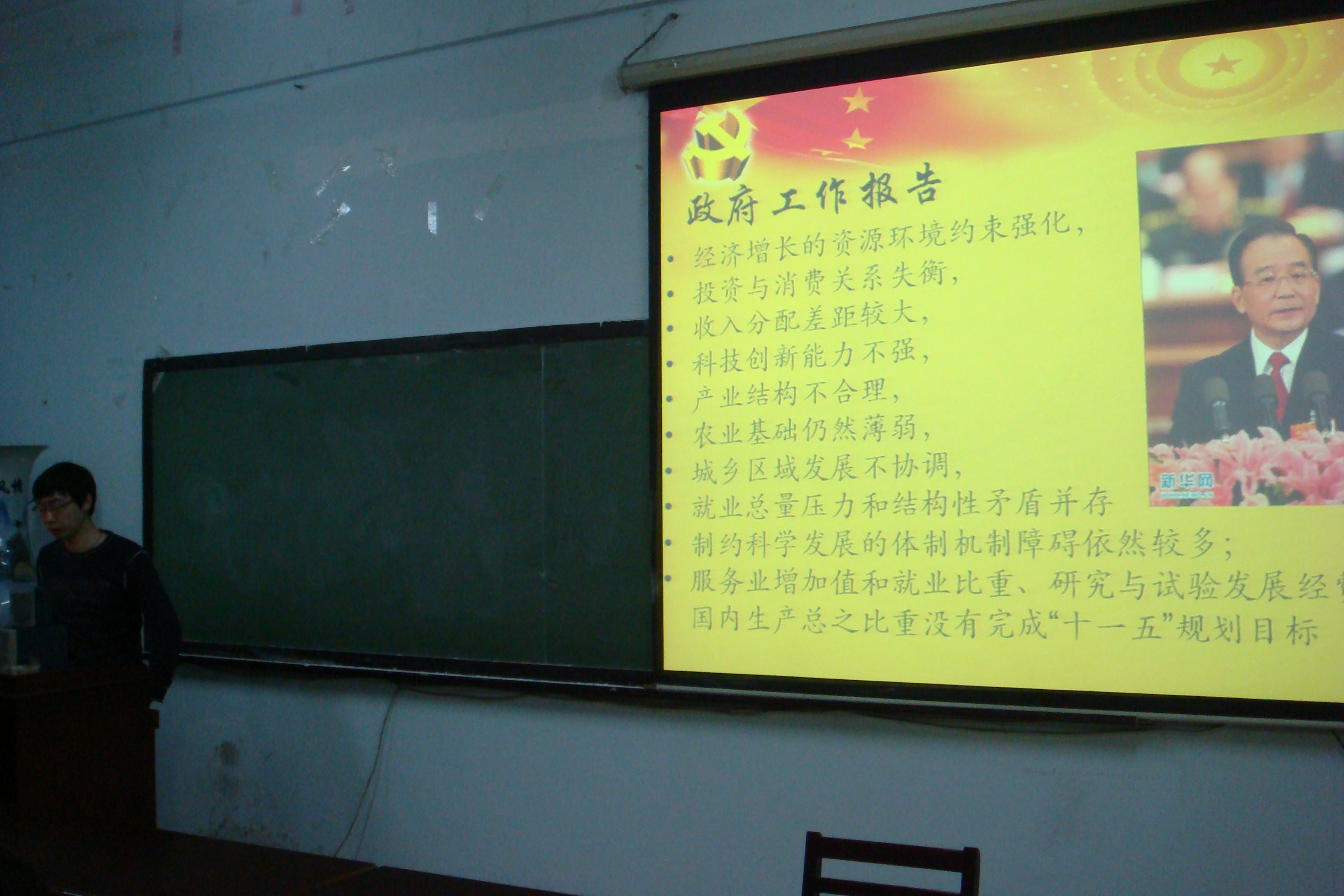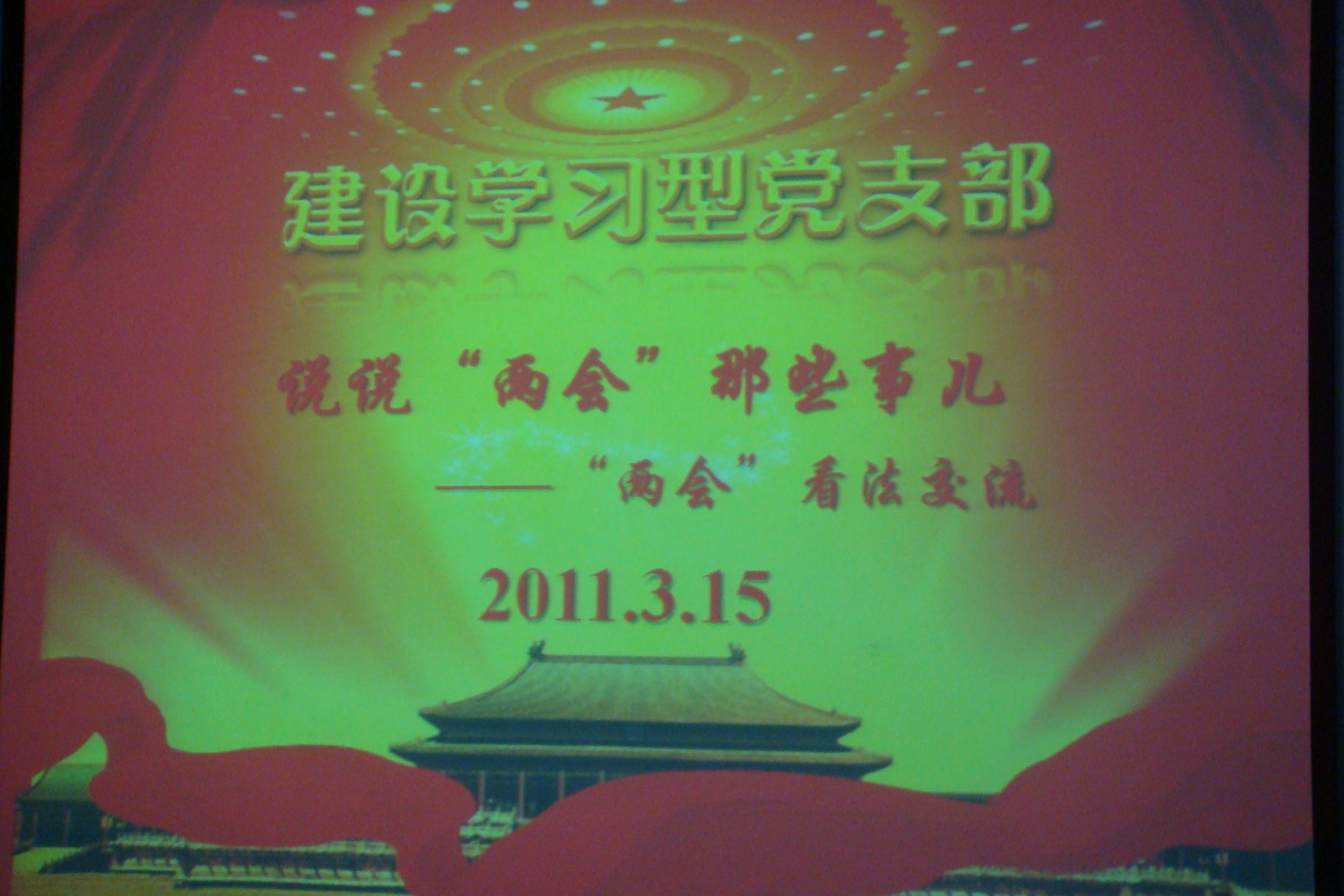 2011年3月15日,化工学院10硕第一党支部关于两会看法交流会---“说说‘两会’那些事”活动在理学楼L901举行。 活动以《财经郎眼》---“一个馒头引发的思考”为引子,引出了关于最近税务改革的讨论。赵彦彪,于凤斌,吴瞾等人通过对比国内外关于个税征收方式的不同,以及两会中提到的关于提高个税起征点的议题,发表了自己的观点,认为我国的税收应该采取更加人性化,公开化和灵活化的政策。 王洺浩同学关注了“两会”上提出的关于高校教育发展和改革的议案,认为建设一流大学的关键要结合中国的实际,提高教师队伍的培养,高校的管理要去除行政化。 郭俊同学从民族精神世界的角度,谈到我国现在国民阅读书籍数量严重下降的事实,并提出增设读书日的建议。王战辉同学提到了加强政府职能效率的建议。王蓓蓓同学分析了我国在禁烟事业上失败的原因在于政企不分。翟云飞同学则通过“华南虎”事件,提出了诚信的重要性,尤其是我们在做论文研究时要实事求是,严防造假。