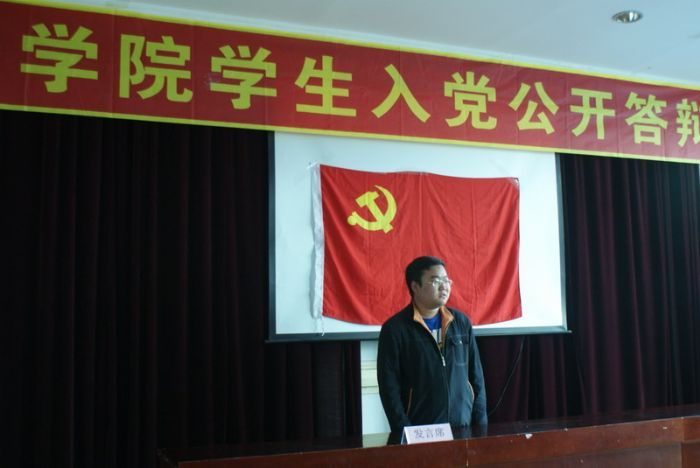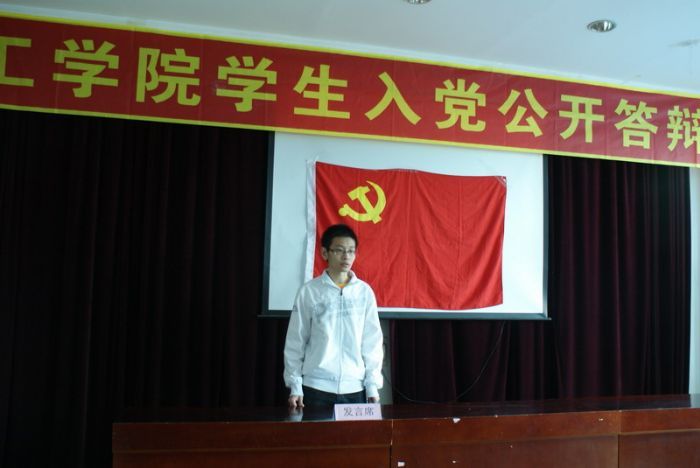 2011年5月20日下午,化工学院学生入党公开答辩大会在理学楼308举行。化工学院党委书记姜兆华、党委副书记岳会敏、学工办的全体老师及各学生党支部支部党员及学生代表参加了公开答辩会。 下午1点,答辩会准时开始。答辩对象按照要求精心准备了5分钟的答辩陈述,介绍自己的入党动机、优缺点、近一年来取得的重大进步和入党后承诺。提问环节中,各位老师和同学紧扣答辩者入党动机、党的基本理论知识、先锋模范作用发挥等方面提出了问题。答辩对象沉着地回答了一个个尖锐的问题,并且就“药家鑫事件”、“利比亚战争”、“房市调控”等时事热点展开了讨论,答辩会气氛热烈。 本次答辩会历时4个小时,公开答辩会的举行有利于党组织更全面的考核发展对象,同时也是对老党员的一次提醒再教育,活动取得了良好效果