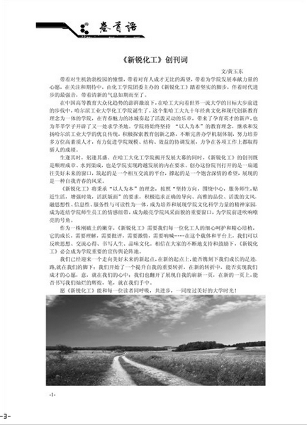 在建党90周年暨化工学院建院三周年来临之际,带着对生机勃勃校园的憧憬,带着对育人成才无比的渴望,带着为化工学院发展奉献青春的心愿,在关注和期待中,由化工学院团委主办的化工学院院刊——《新锐化工》踏着坚实的脚步,带着清新的气息,正式出版了。 《新锐化工》以“化工要闻”、“心情文字”、“求职直通车”三个栏目为主要内容,秉承“以人为本”的理念,按照“坚持方向,围绕中心,服务师生,贴近生活,增强时效,活跃版面”的要求,坚持正确的导向、高雅的品位、活泼的文风,融思想性、信息性、服务性与可读性为一体,成为培养学院文化科学力量的精神家园,成为连结学院师生员工的情感纽带,成为展现学院风采面貌的重要窗口,为学院前进吹响嘹亮的号角。 作为一株刚破土的嫩芽,《新锐化工》需要每一位化工人的细心呵护和精心培植,它的成长,需要鼓励,需要理解,需要批评,需要激情,需要呐喊……在这个载体和平台上,我们可以反映思想、交流心得、书写人生、品味文化。相信在大家的不断地支持和鼓励下,《新锐化工》必会成为学院重要的宣传阵地和学生喜爱的文化家园。