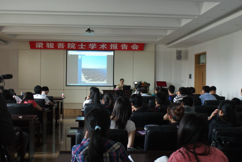 梁院士首先介绍了世界能源体系的现状,从环境保护和能源安全的角度分析了光伏电池产业的潜力和前景;接着阐述了光伏电池的结构和工作原理,重点讲述了各种光伏电池材料的性能、优势、研究情况和发展趋势,介绍了光伏电池器件工艺的相关情况;最后热情地解答了现场师生的提问。 副院长杨春晖教授代表学院向梁院士赠送了礼物。