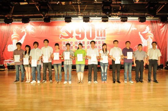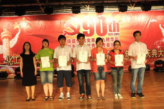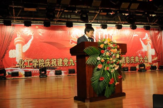 (海洋/文)6月12日下午,化工学院庆祝中国共产党建党九十周年暨建院三周年表彰庆典大会在新活动中心301举行。校纪委副书记、监察处处长李仁福,学生工作处处长孟庄,党委宣传部部长吴松全,研究生院副院长、研究生工作部部长王宏,党委组织部副部长、党校副校长赫彦明,校团委书记魏红梅,学生工作处副处长何晶、石玉明,化工学院院长黄玉东,党委书记姜兆华,副院长尹鸽平、杨春晖、孟令辉,化工学院各系主任、副主任及全院师生出席了庆典大会。化工学院党委副书记岳会敏主持表彰庆典大会。 大会在雄壮的国歌声中开幕。化工学院党委书记姜兆华教授宣读了《化工学院关于表彰2010-2011年度学生先进集体和先进个人的决定》,与会各位领导分别为学生先进集体和先进个人颁奖。化工学院院长黄玉东教授代表学院致辞,他回顾了学院在庆祝建党九十周年举办的系列活动,号召学院师生通过庆祝党的90岁生日,了解党的伟大历史成就,增强自身责任感和使命感,把学院事业不断推向前进。黄玉东院长在讲话中总结了过去一年中,学院围绕“建设世界一流的化工学院”的目标,在人才培养、科学研究、教学工作、太阳集团与合作、师资队伍建设等方面取得的成绩,代表学院向学校各级领导表示感谢,号召学院全体师生围绕学校加快建设世界一流大学的目标,奋勇争先,勇创辉煌。 表彰大会结束后,进行了庆祝文艺演出。演出以“颂盛世,铭党恩,庆九秩华彩”和“创先进、争优秀,谱青春乐章”两个篇章,表达了化工学院全体师生员工对党的深情祝福,对学院的无限热爱,展现了化工人的风采。