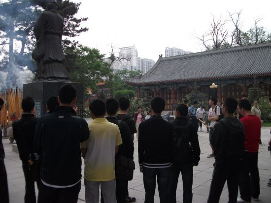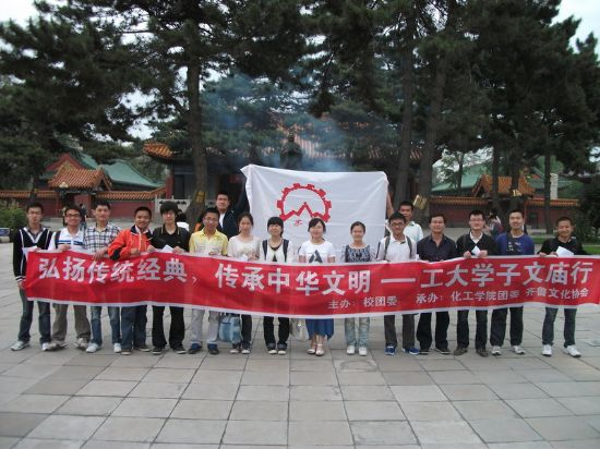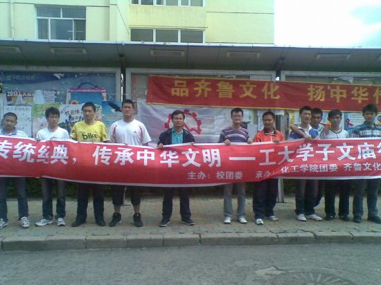 为加强校园文明礼仪建设,优化团活育人环境,提高学生文明素质、道德水平和文化修养,营造人人知文明、人人懂礼仪的校园文化氛围。在2011年6月6日,由校团委主办、化工学院团委和齐鲁文化协会承办的“弘扬传统经典,传承中华文明”——工大学子文庙行活动在哈尔滨文庙隆重举行。 在文庙导游的细心讲解下,同学们了解了儒家传统学说、文庙各个阶段的历史、其内部建筑等等。万仞宫墙、棂星门、大成门、大成殿、孔子行教像等等一个个有着丰富内涵的景点给予了同学们极大的心灵震撼。除此之外,同学们对鄂伦春族、满族等等的风俗也有了一定的了解,对加深各民族之间的理解和尊重起到了重要作用。 参观结束后,同学们在工作人员的引导下,拜祭孔子行教像,以此向儒家思想的创始人——至圣先师孔子致敬。接下来,在棂星门后,孔子行教像前,同学们整齐列队,朗诵儒家经典,传承中华文明。 通过本次文庙之行,加深了同学们对民族文化特别是儒家文化的了解与认识,熟知了中华传统文明礼仪,也表达了对先贤先哲的崇敬与怀念。