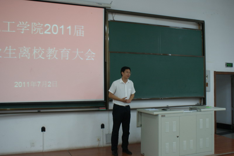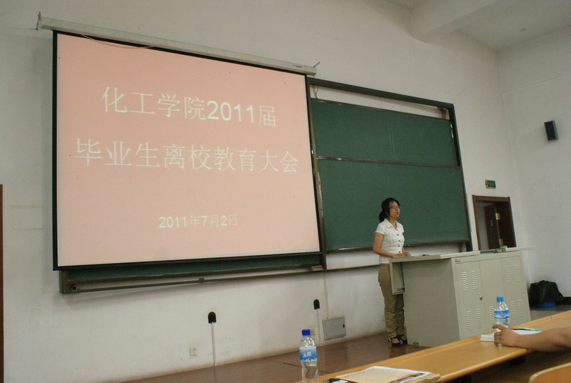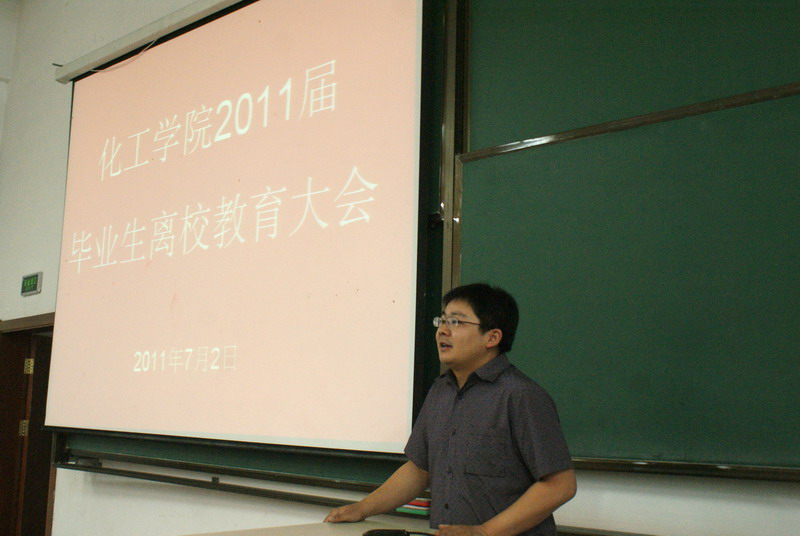 2011年7月2日上午,化工学院为营造文明和谐的校园氛围,使毕业生能够安全、文明离校,在一校区正心楼11教室举行了11届毕业生离校教育大会。院党委副书记岳会敏,学工办辅导员王玉楠参加了会议。会议由化工学院本科生辅导员刘铭辉主持。 会上,院党委副书记岳会敏首先代表学院师生对2011届毕业生圆满完成学业表示热烈的祝贺,对本届毕业生为学院发展建设做出的贡献表达了衷心的感谢。岳老师希望毕业生同学走上新的工作岗位后,爱岗敬业,积极工作,尽快适应自身角色的转变,尽快融入到新的团队中去;希望毕业生同学始终牢记哈工大“规格严格、功夫到家”的校训,踏实做人,勤恳做事,正确面对挫折,勇于接受挑战,以良好的心态和正确的人生态度走好职业生涯的第一步;希望大家在事业取得一定成绩的时候,能够履行自身社会责任,积极回报社会,回报母校。岳老师还希望全体毕业生用文明健康的方式告别大学生活,文明离校。最后岳老师代表全院师生祝愿2011届毕业生一路顺风,前程似锦。 随后,院学工办辅导员王玉楠、刘铭辉分别介绍了学校关于毕业生离校的有关安排和要求,对户口迁移、档案转寄、派遣证发放、组织关系转接、欠费清理等情况作了详细说明。 会议最后,2011届毕业生开展了为母校教育基金会捐款活动,本次捐款共募集款项2517.3元。此次募捐所有全部款项将用于资助家庭经济困难学生的学习生活。