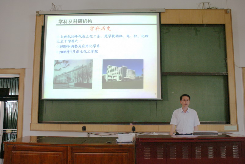 为让更多考生了解哈工大化工学院的学科特色、研究方向和研究生招生与培养的有关政策,2011年7月1日14:00,化工学院在理学楼L001举行“2012年博士生硕士生招生宣传咨询会”。化工学院院长黄玉东、副院长尹鸽平及各系学科带头人出席会议,来自本院大三和研一的100余名学生参加了本次活动。活动还吸引了哈市其他院校的学生前来参加。 黄玉东院长作了化工学院教学科研和人才培养情况的报告,主要就学术队伍及研究生导师情况、主要研究方向与科研项目、科研成果、国际合作、研究生培养成果与社会评价、学科软硬件支撑条件等进行了详细介绍。尹鸽平副院长介绍了硕士、博士研究生的有关招生与培养的政策,研究生培养模式,出国留学等情况。报告后还进行了现场咨询。同学们就自己关心的问题踊跃提问,各系学科带头人和专职管理人员就研究生招生政策及相关信息进行了现场答复,给学生提供了详细周到的报考咨询服务,活动取得了良好效果。