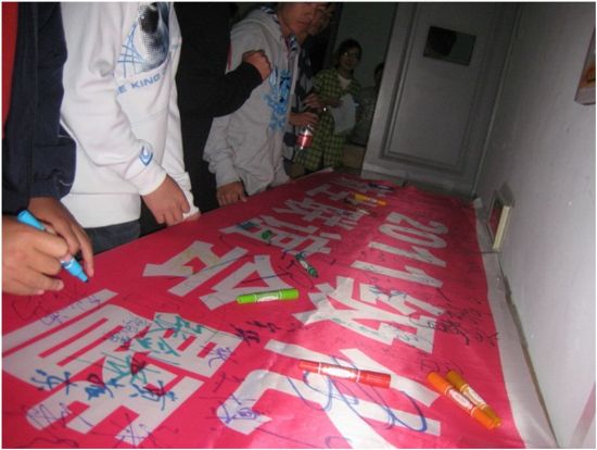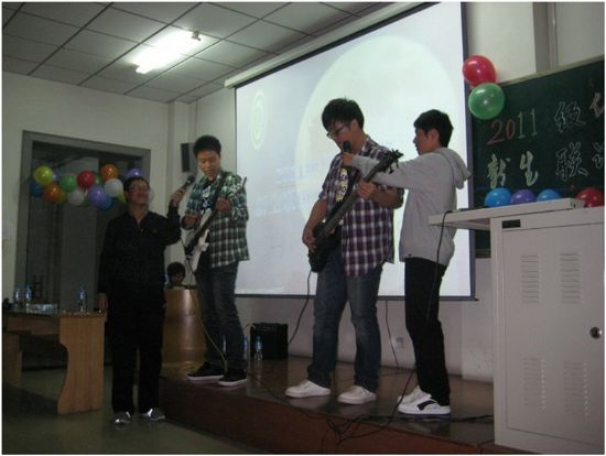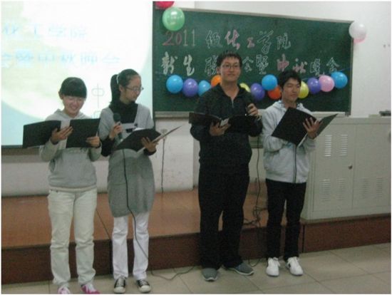 2011年9月12日晚六点,由化工学院2011级新生组织策划的“新生联谊会暨中秋晚会”在二校区主楼212教室隆重举行。化工学院1114203班主任张秋明老师、院团委书记刘铭辉老师和2011级全体新生同学参与到了本次活动当中。 伴随着悦耳的琴声,来自2011级各班级的同学们按顺序相继入场,并在签名条幅上留下了自己的姓名和中秋祝福,并领取了纪念饰品。 四位主持人奉献的一段诙谐幽默的开场白拉开了整场晚会的序幕,化工学院1114203班主任张秋明老师给全院学生带来了节日的祝福,同时2011级新生同学精心准备的23个节目更使整场晚会气氛热烈非常。 同学们准备的节目精致而有内涵。一首《老男孩》,勾起大家心中无限情感;民歌对唱《山歌好比春江水》,带来了别样的民族风情;男孩们的《十年》,道出了我们相聚是种缘;《龙的传人》,一展青年的壮志豪情。活动中,更有高年级学生的倾情弹唱《为你写诗》,带动全场的《王妃》独唱,让人叹服的口琴音乐魔方表演《天空之城》等诸多精彩的节目,把整个晚会推向一个又一个高潮。 本次活动为了让新同学们尽快彼此了解,晚会策划团队还精心准备了新同学视频展示,更有军训期间录制的精彩视频和中秋祝福视频,使“亲情、友情”这一主题贯穿了整个晚会。此次晚会中间还穿插着各种互动环节,现场气氛十分热烈。晚会现场的中秋亲情通话,祝福短信速发等活动,更是向远方带去了同学们的祝福与思念。