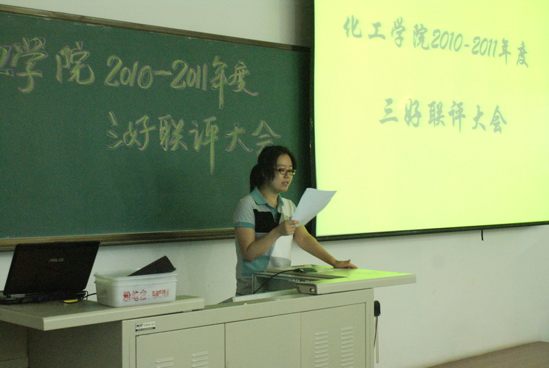 2011年9月13日18:00,化工学院2010-2011年度三好评优联评大会在正心106举行,化工学院团委书记刘铭辉、学工秘书王玉楠、本科生辅导员贺金秋出席了本次会议,大会由王玉楠老师主持。