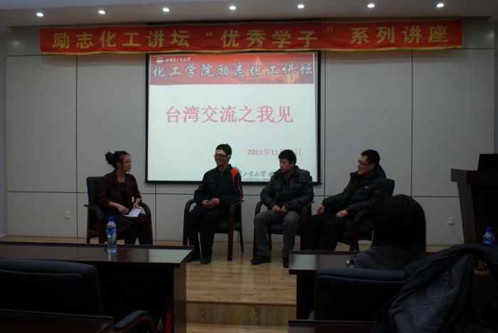 2011年11月22日晚,以“台湾交流之我见”为主题的学长面对面访谈在哈工大一区新活动中心326顺利举行。本次做客讲坛的是赴国立清华大学进行学术交流的化工学院11级硕士刘磊、在台湾义守大学交换一学期的化工学院09级本科生杨宗屿、2011年暑假赴中国文化大学(台北市林区)研习通选类课程以及参与文化交流活动的化工学院09级本科生海洋。 本次访谈活动从三位同学的交流经历开始,三位概括的介绍了在台湾交流的一些见闻。主持人从抵达台湾的初感受,与台湾老师、同学间的关系,台湾大学生的科研态度,台湾大学生对中国的看法等角度进行访问,三位均作了细致的介绍、分享。 访谈接近尾声的时候,在场的同学们与现场三位嘉宾进行了互动沟通。同学们踊跃提问,整个访谈在轻松活跃的气氛中圆满结束。 交流会结束后,与会的同学表示受益匪浅,对今后的交流生活有了更进一步的规划。