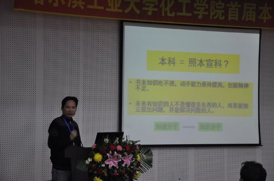 2011年11月26日下午13:30,化工学院首届本科生创新论坛在新活动中心214拉开帷幕。校团委副书记夏辉、化工学院院长黄玉东、党委书记姜兆华、副院长孟令辉、应用化学系主任安茂忠、副主任王殿龙、化学工艺系副主任宋英及各系评委老师、全体本科生同学等参加了开幕式。开幕式由学院党委副书记岳会敏主持。 化工学院院长黄玉东教授在开幕式上致辞。他指出,化工学院自2008年7月成立以来,始终秉承创新从本科生开始的理念,从二年级开始为每位本科生配备创新导师,大力开展各类科技创新实践活动,着力培养拔尖创新人才。目前,学院本科生参与创新性实验计划实现了全覆盖,学生每年发表学术论文、申请各类专利和获得校内外各类竞赛奖项数十项。他说,正值纪念2011国际化学年之际,学院举办首届本科生创新论坛,希望所有本科同学借助参加论坛的机会,交流思想、启迪思维、提高能力,努力把自己培养成为一流的拔尖创新人才。 校团委副书记夏辉老师代表校团委对化工学院本科生首届创新论坛的举办表示热烈祝贺。他指出,大学生创新意识和创新能力的培养,事关国家和民族的前途和命运。胡锦涛总书记在庆祝清华大学建校100周年大会上的重要讲话,34处谈到了“创新”,这更为高校人才培养工作提供了明确的行动指南和工作目标。化工学院举办首届本科生创新论坛,时机契合,意义重大。论坛围绕大学生创新这一主题,进行学术交流和研讨,全面展示了本科生科研水平和创新成果,对推进我校实施创新教育、培养拔尖创新人才具有重要的意义。 开幕式结束后,进行了论坛主题报告。化工学院姜再兴老师和潘钦敏教授在论坛上做了主题报告。姜再兴以《英文文章撰写心得交流》为题,介绍了英文学术文章的撰写、投稿、修改与申述、录用等方面的经验,鼓励同学们提高英文论文撰写能力。潘钦敏教授以《本科生创新能力杂谈》为题,从创新对于学生成长和社会发展的重要意义、本科生创新意识的培养、创新能力的提高等方面进行了阐述,鼓励本科生同学在创新活动中要有“初生牛犊不怕虎”的精神,敢于创新、勇于创新、善于创新。 论坛主题报告后,按照应用化学分论坛、高分子及化学工艺分论坛分别在活动中心326、327举办了分论坛。应用化学分论坛上,来自应用化学专业的10位同学作了报告交流,内容涵盖了锂离子电池、铅酸电池和固体氧化物燃料电池、代铬电镀等的材料性能以及改性研究等方面的研究内容。高分子及化学工艺分论坛上,来自高分子、化学工艺两个专业的12位本科生作了报告交流,内容涵盖了新型陶瓷膜、复合材料的制备与性能研究等方面的研究内容。 在本次论坛的闭幕式上,化工学院副院长孟令辉教授对本次论坛进行了总结,宣布了获奖名单。学院党委书记姜兆华教授在闭幕式上致辞,他指出,创新论坛的召开,是研究型大学探索如何切实将强大的科研优势转化为人才培养优势的一次有益尝试,也是高等学校如何进行文化传承创新的一次有益尝试,对推动本科生之间的学术交流,营造良好的崇尚科学文化的学术氛围,促进多学科研究思想和研究方法的融合,对打造化工学院培养学生科学精神的平台起到积极的推进作用。他希望所有本科同学在今后的科研工作中,积极践行“规格严格、功夫到家”的校训,加强理论功底,强化动手能力,提高创新意识和能力,积极投身到各类科创活动中,增强团结协作意识,提升团队作战能力,多出高水平的创新研究成果,为化工学院的发展贡献力量。 化工学院首届本科生创新论坛,以“思科技,创未来”为主题,论坛筹备经历了论文征集、论文评审、学术不端检测等阶段,得到了学院本科生同学的积极响应,共180余名本科生同学积极参与。论坛共征集了研究论文、研究综述等中、英文论文40余篇,经各系老师认真评审,论文集共收录文章32篇,其中22篇研究论文在分论坛进行了报告交流。经各分论坛评委老师的认真评议,共评选出一等奖论文3篇、二等奖论文5篇、三等奖7篇。 化工学院党委副书记主持开幕式 化工学院院长黄玉东教授致辞 校团委副书记夏辉讲话 论坛开幕式现场 化工学院姜再兴老师做《英文文章撰写心得交流》报告 化工学院潘钦敏教授做《本科生创新能力杂谈》报告 高分子及化学工艺分论坛 高分子及化学工艺分论坛 应用化学分论坛 应用化学分论坛 戴长松教授做应用化学分论坛分论坛总结 宋英教授做高分子及化学工艺分论坛总结 化工学院副院长孟令辉教授对本次论坛进行总结 三等奖颁奖仪式 二等奖颁奖仪式 一等奖颁奖仪式 化工学院党委书记姜兆华教授闭幕式致辞 化工学院首届本科生创新论坛科技创新成果展 化工学院首届本科生创新论坛工作人员合影