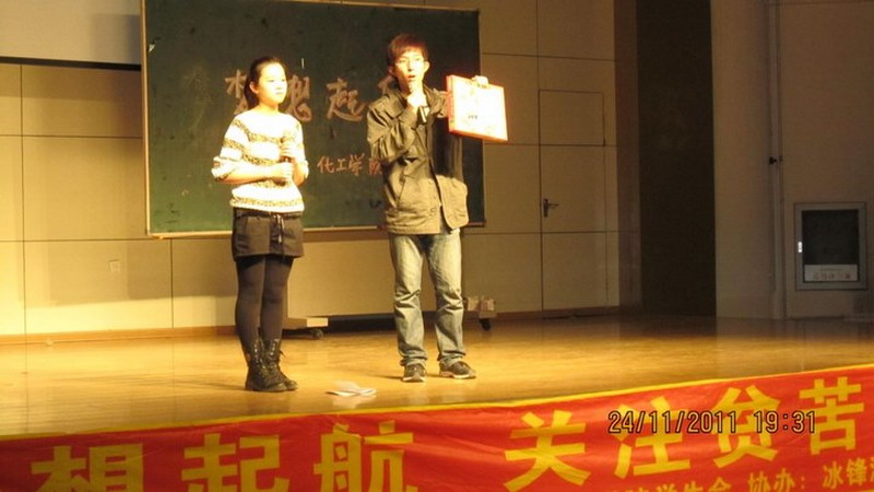 为响应团省委、校团委号召,引领青年服务社会、奉献爱心,2011年11月至12月间,由化工学院团委、“爱之翼”志愿者服务团组织的“关爱阿城留守儿童”大型慈善公益系列活动成功举办。本次活动分为室外宣传、“梦想起航”爱心慈善义拍及联络慰问三部分组成。本次活动受到了火狐中国® 社区等企业单位、院内外学生的两千余元物资赞助。 2011年11月24日,化工学院学生会、志愿者协会和冰锋流行社团联合举办了“梦想起航”关爱阿城留守儿童的爱心慈善义拍活动。 2011年12月4日,化工学院团委、志愿者协会派出8名志愿者赴阿城地区慰问留守儿童。当日早上五点半,志愿者们便冒着严寒前往阿城。时针指到8点时,志愿者们就到达了阿城地区,一下车便奔赴到之前联络好的孩子家中。当志愿者们走进孩子的家中,看到留守儿童家中的艰苦环境时,心中都涌起了一份怜惜和分献爱心的意愿。志愿者们代表学院将书本、纸笔、帽子、手套等物品捐赠给了孩子们,并表达了对他们的关心和慰问。每一位收到礼物的孩子们都发自内心的笑了,老人们也激动地落下了泪。 志愿者们在服务的过程中,为了使孩子们受到进一步的关心关爱,他们主动联系了当地镇政府,并将孩子们集体请到了镇政府做客。在镇政府的大力支持下,志愿者借用政府的多媒体展映厅给孩子们放映了精彩的动画,并安排了成语接龙等诸多互动节目。最后,孩子们在纸片上写下了自己的心声— “我长大要好好赚钱,照顾好奶奶”、“我长大了想当一名老师”……,稚嫩而纯真的话语深深地触动了在场的每个人。现场的志愿者向每个孩子分发了他们喜欢的图书和包有慰问金的纯手工小红包。志愿者们说,能看到孩子们无邪的笑脸是他们最大的满足,我们一定将爱心传承下去,进行到底……
