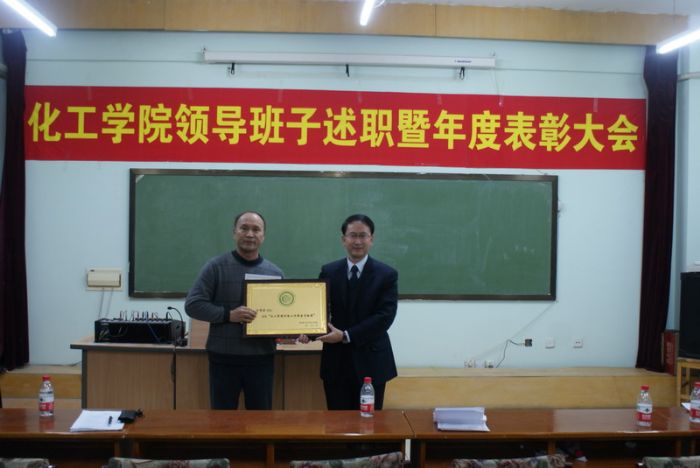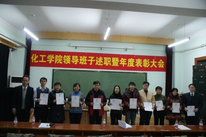 2011年12月28日下午14:00,2011年度化工学院领导班子述职及表彰大会在理学楼601召开。校党委组织部副部长、党校副校长赫彦明、组织部张薇、化工学院全体教职工参加了领导班子述职大会,会议由党委书记姜兆华主持。述职大会结束后,进行了学院年度表彰大会。 院长黄玉东代表领导班子做了2011年度领导班子述职报告后,做了个人工作述职报告。黄玉东院长在领导班子述职报告中,全面总结了2011年度学院在人才培养、科学研究、学科建设、师资队伍、国际化办学、学生工作等方面取得的成绩,提出了2012年的工作思路。党委书记姜兆华对学院党建工作、人事工作、保密工作等工作进行了总结。副院长尹鸽平、孟令辉、杨春晖和党委副书记岳会敏分别就分管工作进行了总结。 与会教职工从德、能、绩、勤、廉等方面对学校各职能部处及化工学院领导班子成员进行了民主测评,并进行了现场无记名投票。 述职大会结束后,学院对2011年度在科研、教学、学术交流等方面表现突出的先进集体和个人进行了表彰,院领导为获奖教职工进行了颁奖。