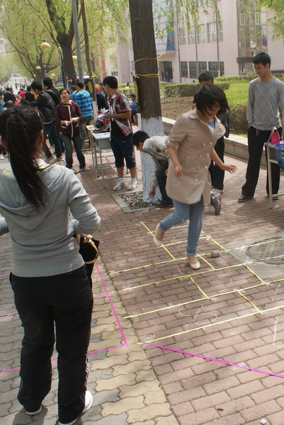 春意盎然,万物复苏,为营造轻松愉快的校园氛围,丰富全校师生文化生活,由校团委、国际合作处、留学生中心主办,化工学院团委、国际精英社团承办的“青春梦飞扬,动感嘉年华”第四届校园趣味吉尼斯挑战赛于5月13日在一校区步行街火热进行并取得圆满成功。 本次嘉年华共包括十一项趣味活动,分别由化工学院本科及研究生的11个团支部进行承办,每一项活动均为各团支部自行讨论设计,其中有激动人心的真人CS定点射击,欢乐有趣的呼啦圈比赛,精彩绝伦的跳格子比赛,刺激非常的飞镖比赛,竞争激烈的投壶比赛等等。活动参与者在进行简单信息登记后即可加入欢快的活动中,并且获得一张抽奖券参与到精心设计的抽奖环节中,同时每一项活动的趣味吉尼斯纪录获得者将获得由组织方提供的一张价值150元的真人CS奖券。 活动当日,时逢母亲节,参与活动的同学也借此机会在活动中用贴纸写下了自己对母亲的感激和爱意并贴在活动宣传展板上,满满的祝福展板,让本次活动更具意义,在欢乐运动的同时,引导同学学会感恩。 玩游戏,拿大奖,本次活动刚开始就吸引了大批师生参与。从10:30到12:40,从各项活动场地到抽奖现场,学苑楼前、步行街上人山人海,热闹非常,无论是参与者还是组织者,大家都沉浸在欢乐的海洋中。在欢声笑语中,此次“青春梦飞扬,动感嘉年华”趣味运动会圆满结束。