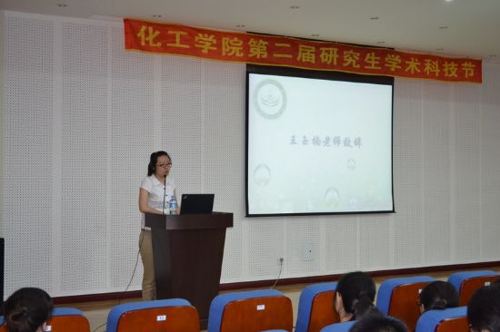 特邀报告结束后化工学院研究生会主席李翠云同学对第二届研究生学术科技节的成果做了回顾与总结。随后王老师致辞,对本届学术科技节的成果予以了充分的肯定并指出了不足及改进措施。最后对本届学术科技节的先进个人获得者进行了表彰。