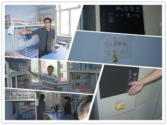 比赛过程中,同学们充分发挥自己的想象力和创造力,精心设计,用灵巧的双手美化了各自的寝室并通过PPT等多种方式进行现场展示。A08-217寝室学习气氛浓厚,成员平均学习成绩达到85分以上;A08-213寝室热爱运动,是各项体育比赛的主力军,多次为学院取得荣誉;A08-219寝室干净整洁,屋内布局颇具军营风范;A08-211寝室最具特色,不仅在寝室的小黑板上记录着日常生活中的点点滴滴,更在寝室醒目处张贴了人走断电的标语来时刻提醒自己,同时公寓阿姨也以此为契机,呼吁大家做到人走断电,确保学生和公寓的安全。女生寝室展现给我们另一种美,A12-511-2寝室用绿意盎然的盆景给寝室增添更多活力;A12-518-2 特色的吊饰让寝室别具一格;A12-525-2寝室最为进步,现在的寝室美观大方,焕然一新;最为突出的当数A12-520-2寝室,她们用灵巧的双手剪出中国特色的贴花,令人叹为观止,展现了她们和谐美好的寝室氛围。