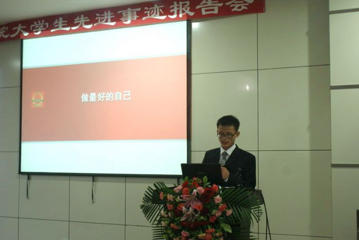 为继承和发扬我校典型引路工作传统,强化榜样示范、典型引领作用,充分激发全院共产党员和全体学生的创先争优热情。2012年6月20日18:30,“青春榜样,前行力量”化工学院大学生先进事迹报告会在二校区文体活动中心222隆重举行。研究生院副院长兼研工部部长王宏、基础学部主任助理李飞、化工学院院长黄玉东、党委副书记岳会敏、研究生协理员王玉楠、辅导员贺金秋以及全体大一同学出席报告会。 报告会在庄严的哈工大校歌中拉开序幕。化工学院四名优秀大学生和1个优秀班集体讲述了他们的成长故事:2011级硕士研究生杜磊,他在学习的道路上踏实认真,在学生工作中奉献青春,他用亲身的经历告诉同学们,在大学生活中,学习不是全部,还要在学生活动中积极提升自己的综合素质。 2008级本科生王雪,面对不及格的挫折,永不气馁,独特的学习方法和勤奋刻苦使她的成绩不断上升,最后以专业第一的成绩保送研究生。2008级本科生林家骏,学习成绩优秀,科研成果突出,以第一作者身份发表科技论文两篇,曾获大学生创新性试验计划项目校一等奖、校“三好学生标兵”等奖励,9月份将赴美国佛罗里达大学攻读硕士研究生。2008级本科生刘夏林,面对家庭困境,自强自立,曾获得“校十大自强之星”等荣誉称号,以优异的成绩保送复旦大学研究生。1014212班,学习氛围浓厚,成绩优异,连续两年零挂科,百分之百递交入党申请书,积极参与学校及学院组织的各项活动,表现突出,起到了良好的模范带头作用,曾获得校“三好班级标兵”、“优秀团支部标兵”等荣誉称号。他们用勤奋与责任谱写了自己的青春赞歌,生动诠释了“规格严格,功夫到家”的哈工大精神,让在场的每一位同学为他们自强自立、坚忍不拔的精神所感动,为大一的同学们提供了成长的借鉴和思考。 报告会后,化工学院院长黄玉东教授做了讲话。他勉励大一同学以作报告的先进集体和个人为榜样,自觉弘扬自强不息的哈工大精神,刻苦学习,不断提高综合素质,努力把自己培养成为拔尖创新人才,成为国家和社会栋梁之才。黄院长还要求同学们把自身的成长与集体的成长结合起来,相互鼓励、相互帮助,共建和谐、向上、温馨的集体,不让一名同学从身边掉队,助推身边每一名同学的成长成才。 齐唱哈工大校歌 王雪同学作报告 杜磊同学作报告 林家骏同学作报告 刘夏林同学作报告 1014212班代表作报告 黄院长致辞 报告会现场 嘉宾与报告团成员合影留念 |