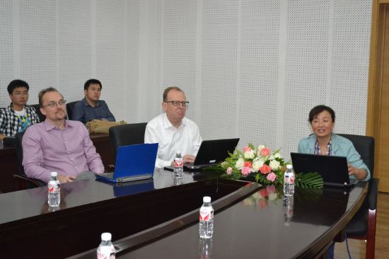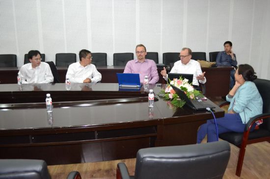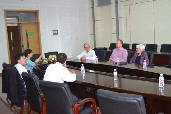 9月22日上午,我校首席学术顾问、哈尔滨-奥胡斯多尺度界面化学与工程国际中心荣誉主任弗莱明·贝森巴赫教授一行在新活动中心334与化工学院副院长杨春晖教授、陈大发教授等师生进行了座谈交流。 交流会上,杨院长介绍了化工学院近期的仪器采购清单和位于江北高科技园区的在建实验室,体现了化工学院现有科研硬件水平。还列举了化工学院师生近期在高水平期刊上发表的文章,并以新能源合作和石墨开发利用为例,介绍了学院的政产学研项目。会议上,几位教授还对在校PHD培养计划的制定,未来实验室具体细节以及目前学校所执行的重大项目进行了着重的讨论,弗莱明教授提出了很多中肯良好的建议。在热烈的会谈气氛中,弗莱明教授对目前化工学院所取得的成绩表示了肯定,并对学院和中心的未来发展充满了憧憬。