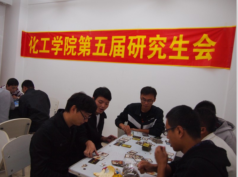 为了加强硕博研究生之间的交流,促进同学们的友谊,丰富十一假期同学的精神文化生活,化工学院研究生会于10月2日18:30在十五公寓电视厅133成功举办了棋牌争霸赛。活动内容包括三国杀、斗地主、象棋、五子棋和跳棋。活动还没开始,就有同学在公寓门外等候,活动组织人员在门口热情迎接同学们的到来,公寓管理员也非常支持本次活动的举行,为活动的顺利进行提供了不少帮助。工作人员给大家准备了很多小吃,包括可乐、雪碧饮料,花生水果等,会场布置的也很有节日气氛。比赛一开始,大家就进入了激烈的争杀中。象棋比赛楚河汉界,双方逐鹿中原;跳棋比赛沉着冷静,谁能一马当先;五子棋黑白双方激战正酣,难分高下;斗地主全民动员,三足鼎立;而三国杀无疑是最受欢迎的游戏,3V3斗智斗勇,二者平分秋色。由于大多数同学假期离校,参赛人数相对较少,但是在有限的条件下,大家仍然玩得很开心,活动结束后还给参与的所有同学发放了奖品和纪念品。整个活动在和谐欢快的气氛中进行,在节日期间给同学们带来了很多惊喜。