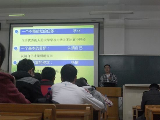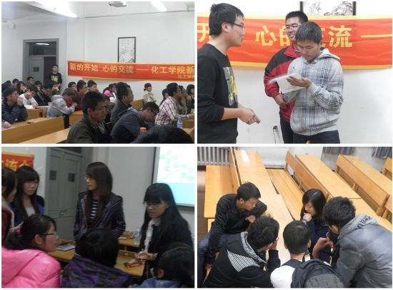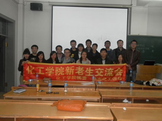 2012年10月13日晚6:30,由励志化工讲坛组织的“青春逐梦,学长领航——化工学院新老生经验交流会”在二校区B516教室成功举办。本次活动邀请了化工学院高年级的优秀学生作为嘉宾,为大一同学解答了大学期间学习、职业发展等方面的问题。化工学院团委负责人贺金秋出席会议。 本次交流会先后有十位优秀老生走上讲台,就出国留学、学习科创、学生工作等方面,做了精彩的发言。之后进行了现场交流,各位老生走进新生中间,与新生亲切交谈,为同学们答疑解惑。老生结合自己的经历和体会,为新生提供了诸多建议和意见,并对同学们提出了殷切的期望,交流会现场气氛热烈。