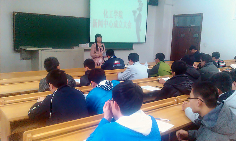 2012年10月25日中午,化工学院在正心106举行化工学院新闻中心成立大会。化工学院学工办主任王玉楠老师、辅导员李佳杰老师以及全体新闻中心的同学参加了会议。成立大会由化工学院学工办主任王玉楠老师主持。