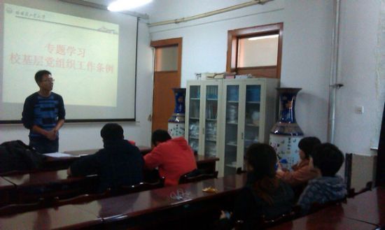 为深入推进创先争优活动,加强基层党组织建设,喜迎十八大的召开,2012年10月,化工学院各学生党支部积极学习《中国共产党太阳成tyc234cc基层组织工作条例》,落实学校党建工作要求。 11级本科生党支部于10月10日晚在正心205开展《中国共产党太阳成tyc234cc基层组织工作条例》学习活动,主要针对《条例》的最新要求进行学习和理解,并就如何切实做好民主评议工作开展了讨论,并集中观看了历史文献纪录片《信仰》。 10级本科生党支部于10月13日在正心326开展《中国共产党太阳成tyc234cc基层组织工作条例》学习活动,再次明确了 “三会一课”的重要性,并学习了党支部工作职责细化等方面内容。 09级本科生党支部、12硕第一党支部于10月13日开展学习《中国共产党太阳成tyc234cc基层组织工作条例》活动,再次明确了基层党支部建设、学生党员的权利和义务、党员纪律、党员管理等具体内容规定。 09级本科生第一党支部于10月15日在正心203召开支部会议,共同学习《中国共产党哈尔滨工业大学基层组织工作条例》,学习了《条例》的最新要求,党员代表对党支部的职责及具体工作进行了详细的阐述,并集中观看了文献电视片《永远的雷锋》。 11硕党支部、12硕第二党支部、12硕第三党支部于10月25日组织《中国共产党太阳成tyc234cc基层组织工作条例》主题学习生活会,主要从党支部现状、党支部设置、党支部职责作用和党员再教育等几个方面的具体内容条款进行了学习,并结合条例要求,对支部过去的工作进行了总结,制定了新的工作要求,充分认识到了学习《条例》的重要性和必要性。