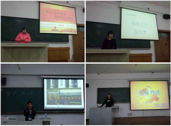 为加强基层组织建设,进一步提升党(团)支部的凝聚力与向心力,提高广大学生青年的综合素质,为每一位同学搭建展示自我的平台,2012年10月22日-31日,化工学院各党(团)支部广泛开展了“铭记青年使命·喜迎十八大”全民演讲活动。 各班同学积极响应学院号召,活动开展过程中,邀请党建负责老师、辅导员、班主任及班主任助理作为支部演讲比赛的评委老师。同学们题材广泛,形式多样:有的针对社会热点问题和国内外时事各抒己见,建言献策;有的介绍自己家乡特色传统文化的,展示家乡的风土人情,山川大河,抒发着对祖国山河的无限热爱;有的介绍自己兴趣爱好,展示自己的特长;有的同学深刻进行了自我剖析,并对照分析了社会和时代背景,设计了一条自己职业发展的道路,在大家的心中产生了强大的共鸣…… 短短的五分钟里,讲说的不仅仅是内容本身,更展示出了同学们或幽默或睿智的个性和乐观的生活态度。本次演讲既是文化的交流,更是思想的交汇,让人收获,引人思考,同时有效增强了支部的凝聚力和战斗力。