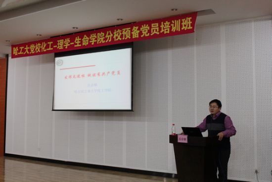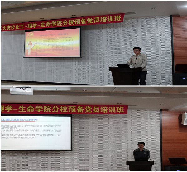 11月15日18:30,化工学院-理学院-生命学院党校分校预备党员培训班第五讲在活动中心227举行。化工学院党委副书记岳会敏老师为学员带来了一场生动精彩讲座,讲座的主题是“学习典型,发挥先进性,做优秀共产党员”。 岳老师围绕“何为共产党员先进性”、“发挥党员先进性的必要性和重要性”、“如何发挥共产党员先进性”,以及“如何学习身边优秀共产党员典型”等方面进行了深入阐述。岳老师结合十八大会议的有关精神与学校实际,用许多生动新鲜的例子,深入浅出地对现阶段大学生党员如何发挥党员先进性做了全面的讲解,鼓励在场学员积极主动学习身边的优秀共产党员典型,激励自我成长成才,充分发挥党员先锋模范作用。 学员讲坛中,发言代表就如何以实际行动发挥党员先进性进行了讨论交流。