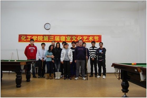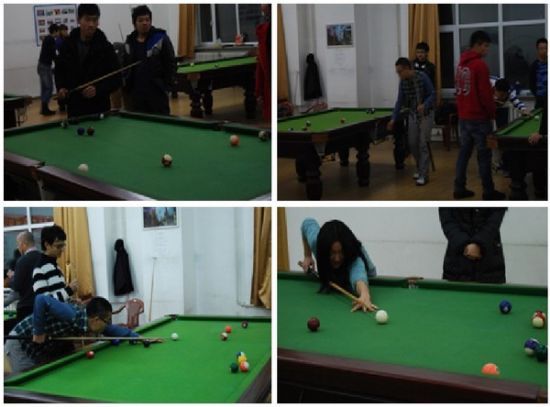 2012年11月25日晚,化工学院寝室文化艺术节系列之台球赛在文体中心台球厅成功举办,本次活动由化工学院团委和A07公寓共同组织。 比赛在晚上6:30拉开帷幕,各参赛选手跃跃欲试。竞赛项目中,各位选手各显其能,展示出了高超的技艺,最终来自研一的于金旭夺得冠军。娱乐项目中,同学们热情参与,感受快乐,有效增进了同学之间的情谊。 本次活动在轻松愉快的氛围中结束。