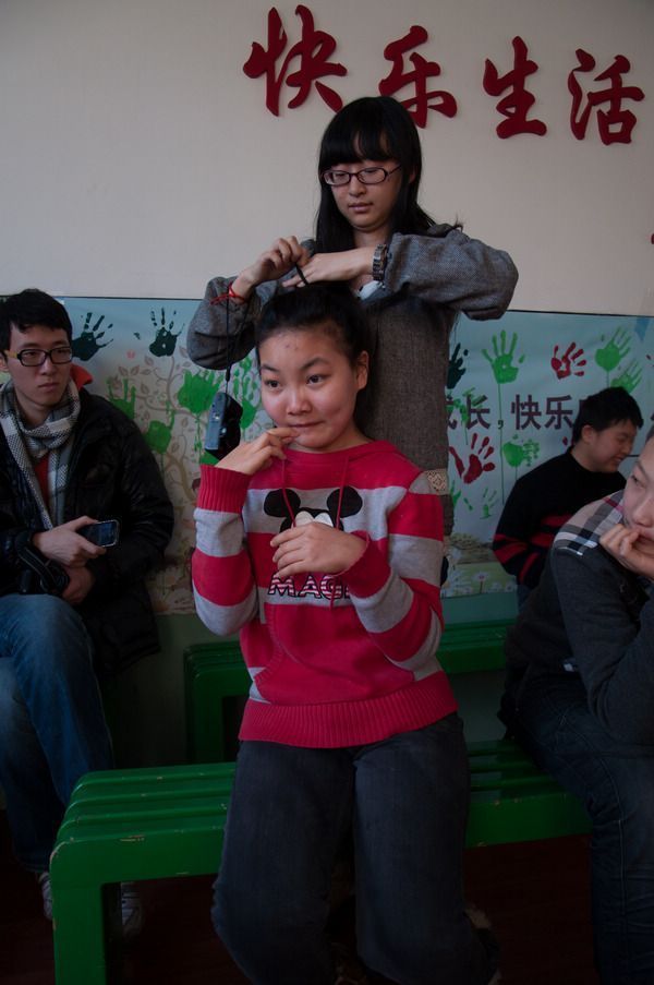 2012年12月6日,哈工大化工学院爱之翼志愿服务团来到燎原学校,与学校的孩子们一起度过了愉快的时光,收获了深厚的情谊。 燎原学校是一所特殊学校,学校中的孩子大部分在十五六岁,但他们的心理年龄却只在幼儿至小学水平。志愿者到达学校时,受到了孩子们的热烈欢迎。每个志愿者分别与两三个孩子坐在一起,与他们聊天,针对部分特殊同学,志愿者用前期培训好的手语与其谈心;并集中开展了“马兰花开画开几朵”、“齐心协力”、“吸管穿皮筋”等拓展游戏。董毅超为孩子们展示的“筷子提米”实验深深地吸引了他们的好奇心。在孩子们的要求下,志愿者与孩子们一起进行了老鹰捉小鸡的游戏,整个教室洋溢着温馨的气氛。 最后,志愿者将自己写好祝福的卡片发给了组内对接的孩子们,孩子们露出了微笑,有的孩子还大声的念出祝福词。临走时,孩子们与志愿者一起唱起了最炫民族风等歌曲,在依依不舍地的情绪中,本次活动圆满结束。