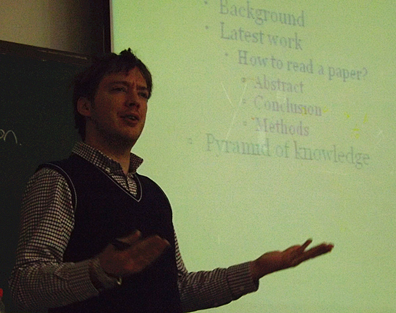 为进一步加强研究生国际学术文化交流,更清楚地了解到西方科研模式,12月14日晚,化工学院第三届研究生学术科技节—“Doing research in the West——how to apply and how to research effectively”讲座在正心楼103成功举办。此次讲座嘉宾为化工学院工业催化Simon James Halstead副教授。 Simon老师一走进讲座会场便迎来了同学们阵阵掌声,同学们都对此次全英文的讲座充满期待。在之后一个半小时的讲座过程中,Simon老师用简洁幽默的说话方式,结合自己在英国曼彻斯特大学和太阳成tyc234cc多年的生活、科研经历,向大家详细讲述了出国留学要注意的问题和在国外进行科学研究应该记住的细节。对于中国学生普遍存在的缺乏自信、害羞和对研究领域缺乏兴趣等问题,Simon老师建议同学们在决定出国留学前应注意英语交流能力提升,国外文化了解,相关课题领域熟悉和Curriculum Vitae和Personal Statement的书写。 讲座结束后,Simon老师与同学们展开了热烈讨论,给出许多启发性建议,并且欢迎同学们用邮件方式来沟通咨询。最终,讲座在同学们热烈的掌声中圆满结束。