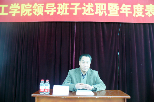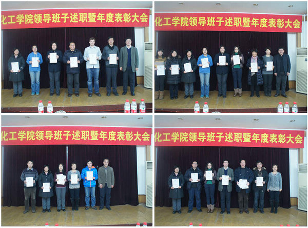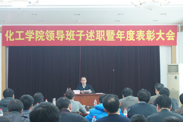 2012年12月29日下午13:30,2012年度化工学院领导班子述职暨表彰大会在理学楼308召开。党委组织部李春林老师、化工学院全体教职工参加了领导班子述职大会。院长黄玉东代表领导班子做了2012年度领导班子述职报告后,做了个人工作述职报告。黄玉东院长在领导班子述职报告中,全面总结了2012年度学院在人才培养、人才引进、科学研究、学科建设、师资队伍、国际化办学、学生工作等方面取得的成绩,并提出2013年的工作思路。党委书记姜兆华对学院党建工作、人事工作等方面进行了总结。副院长尹鸽平、孟令辉、杨春晖和党委副书记岳会敏分别就分管工作进行了总结。 与会教职工从德、能、绩、勤、廉等方面对学院领导班子成员进行了民主测评,并进行了现场无记名投票。 述职大会结束后,学院对2012年度在科研、教学、学术交流、人才引进等方面表现突出的先进集体和个人进行了表彰,院领导为获奖教职工进行了颁奖。 黄玉东院长述职 姜兆华书记述职 民主测评投票 表彰大会(一) 表彰大会(二)